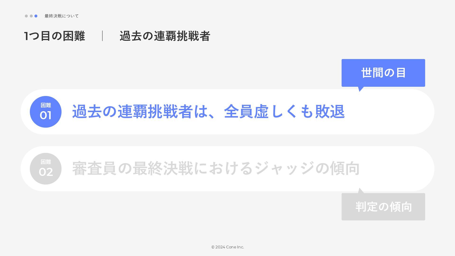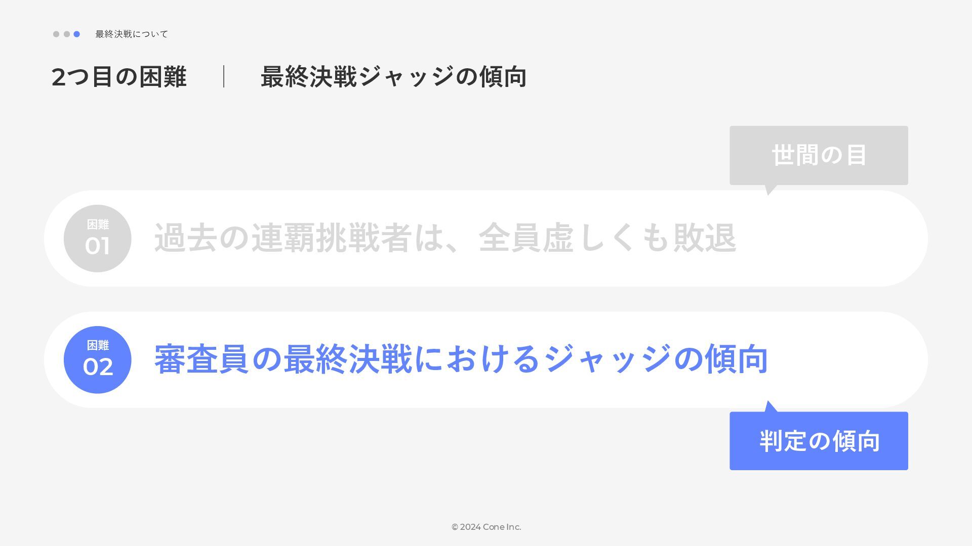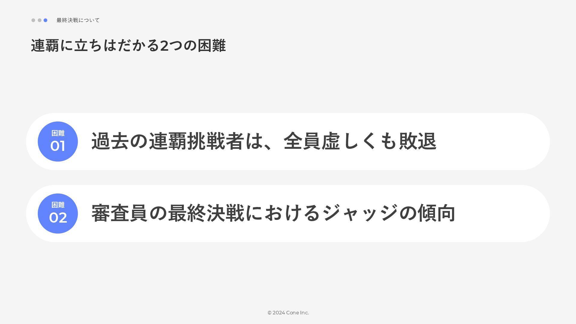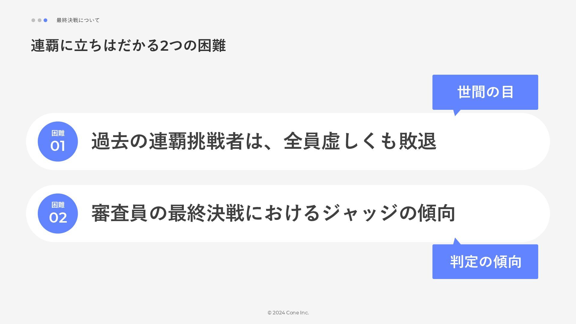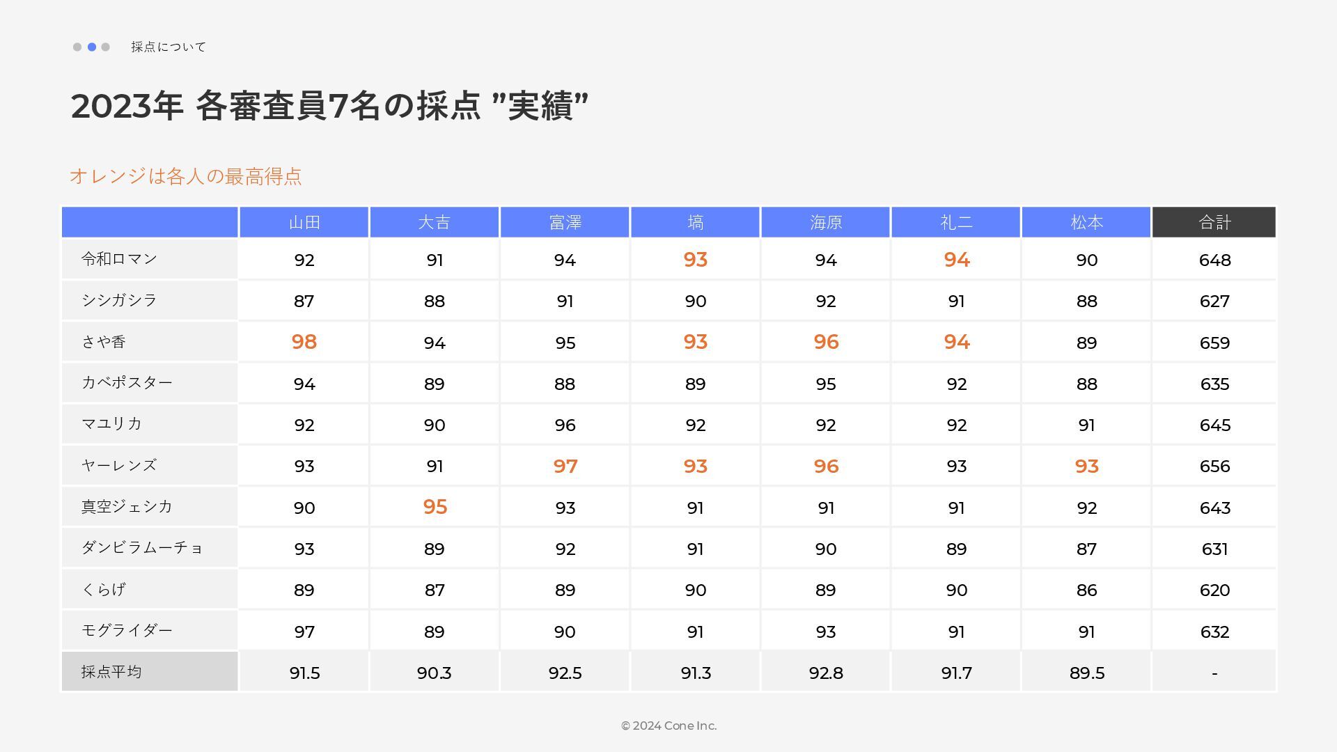 BtoBのコンテンツ制作支援を行う株式会社Coneが、得意の資料作成で今年のM-1を振り返りました。 「9名での審査体制は正解だったのか」「令和ロマンはなぜ2連覇を達成できたのか」について独自の視点で考察しています。
