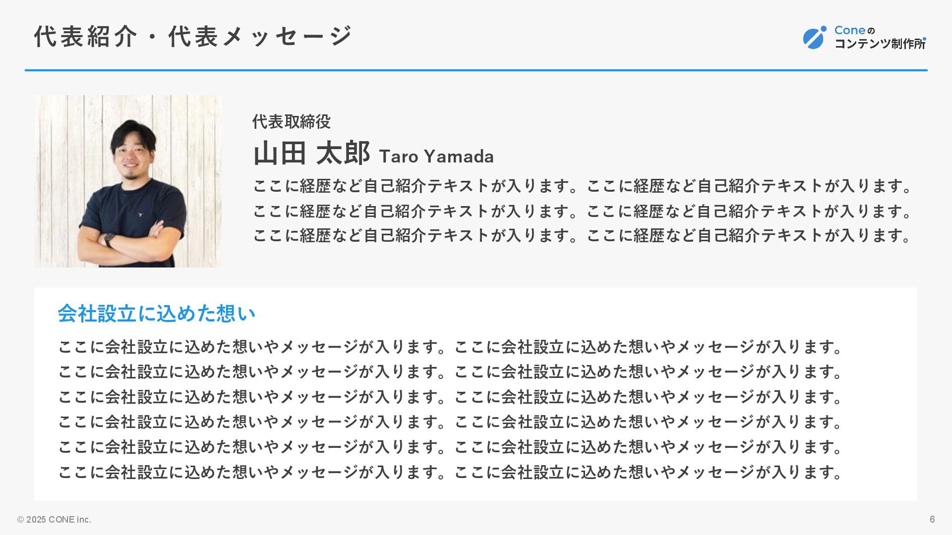 空欄を埋めるだけで会社紹介資料が完成するテンプレートです。