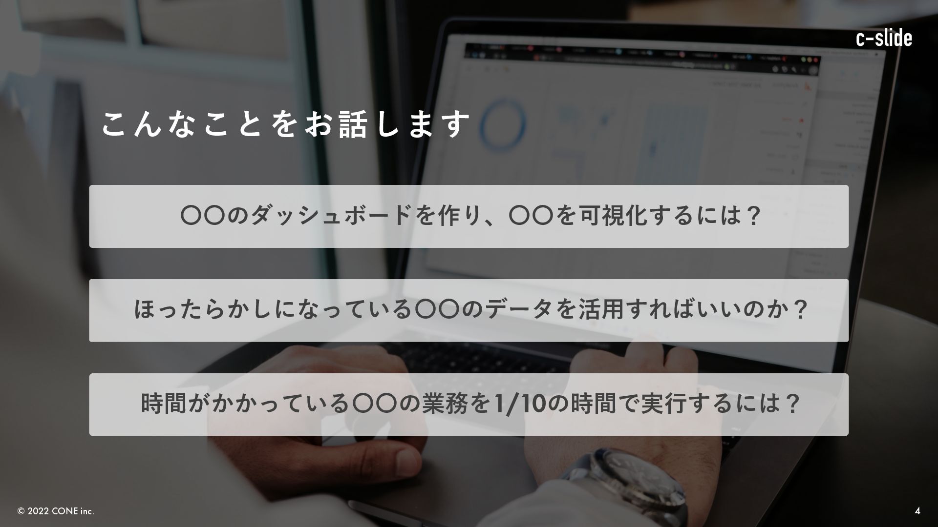 資料作成代行サービス「c-slide」:https://cone-c-slide.com/