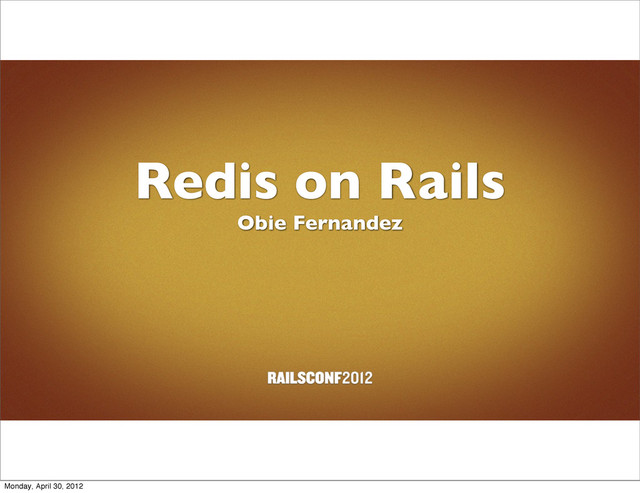 ActiveRecord objects • Event tracking with Redis sets • Graphing relationships between (User) objects with Redis sets • Time-ordered activity feeds with Redis sorted sets • Applying security restrictions to display of activity feeds with intersection of Redis sorted sets • Aggregating group activity feeds with union of Redis sorted sets • Applying Redis sorted sets to scoring and leaderboard programming • Integrating Redis with Rspec and Cucumber • Debugging tactics for when things go wrong or are unclear Monday, April 30, 2012