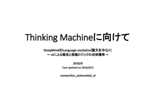 Causal Mathematical Logic as a guiding framework for the prediction of “Intelligence Signals” in brain simulations Open Univ. & Univ. of Houston Journal of Artificial General Intelligence 2013 Black-box Brain Experiments, Causal Mathematical Logic, and the Thermodynamics of Intelligence Univ. of Houston & Open Univ. Causal Logic Models Carnegie Mellon Univ. & Univ. of Pittsburgh Bounded Seed-AGI The Swiss AI Lab IDSIA ほか International Journal of Mathematics and Computational Sciences 2010 Coupled dynamics in host-guest comples systems duplicates emergent behavior in the brain Engineering and Technokogy 2009 A New Universal Model of Computation and its Contribution to Learning, Intelligence, Parallelism, Ontologies, Refactoring, and the Sharing of Resources Member of IEEE, AAAI, APS Conceptual Blending and Quest for the Holy Creative Process Univ. of Coimbra AISB Journal 2003 Optimality Principles for Conceptual Blending: A First Computational Approach Univ. de Coimbra (CISUC) Argument and Computation 2012 Rational argument, rational inference Cardiff Univ & University College London INTERDISCIPLINARIA 2004 Information and Inference as Combined Cognitive Processes Consejo Nacional de Investigacions Cientificas y Tecnicas 推論規則の「創発」という主題に関連する研究論文がある