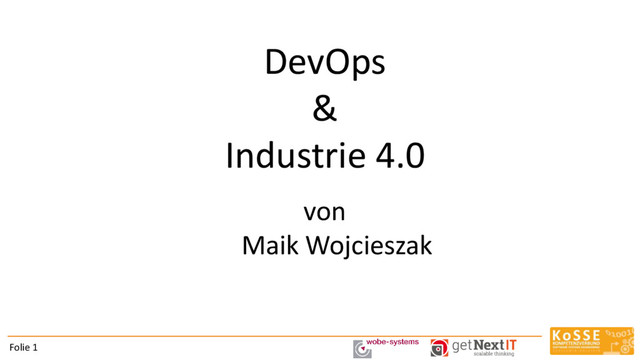 Kulturveränderung und Kommunikation Industrie 4.0 erfordert Vernetzung und Zusammenarbeit von bisher getrennten Bereichen DevOps bietet Ideen und Techniken, um dieses Ziel zu erreichen Die technische Umsetzung erfolgt schrittweise: Kosten minimieren Unnötige Funktionen vermeiden 2 Phase Deploy : 1. Testbetrieb auf dem Zielsystem 2. Produktivbetrieb