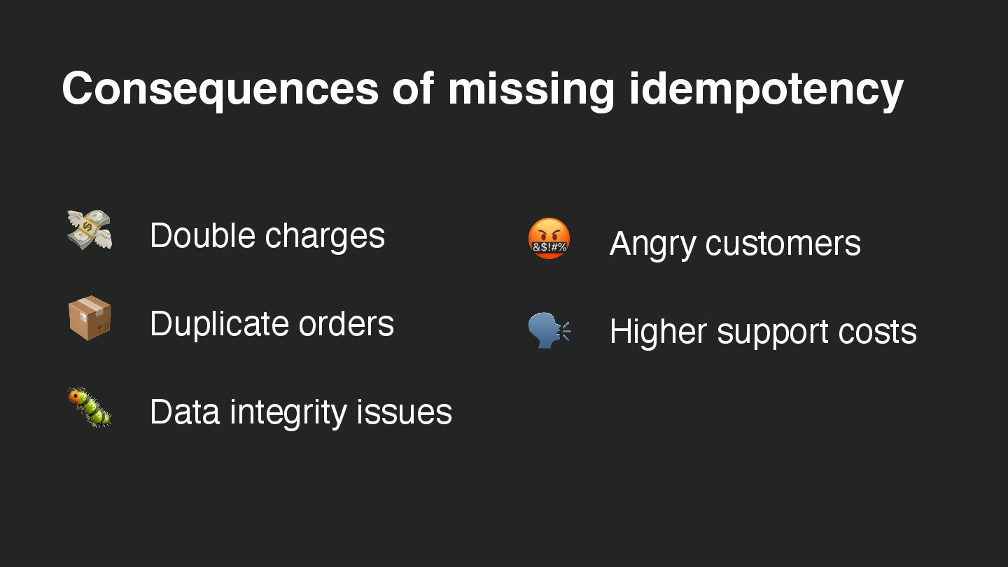 Repeated API requests happen more often than we'd like - double clicks, flaky networks, retries, and proxies can all replay calls unexpectedly. Without idempotency, this can lead to duplicate charges, broken state, and confused users.