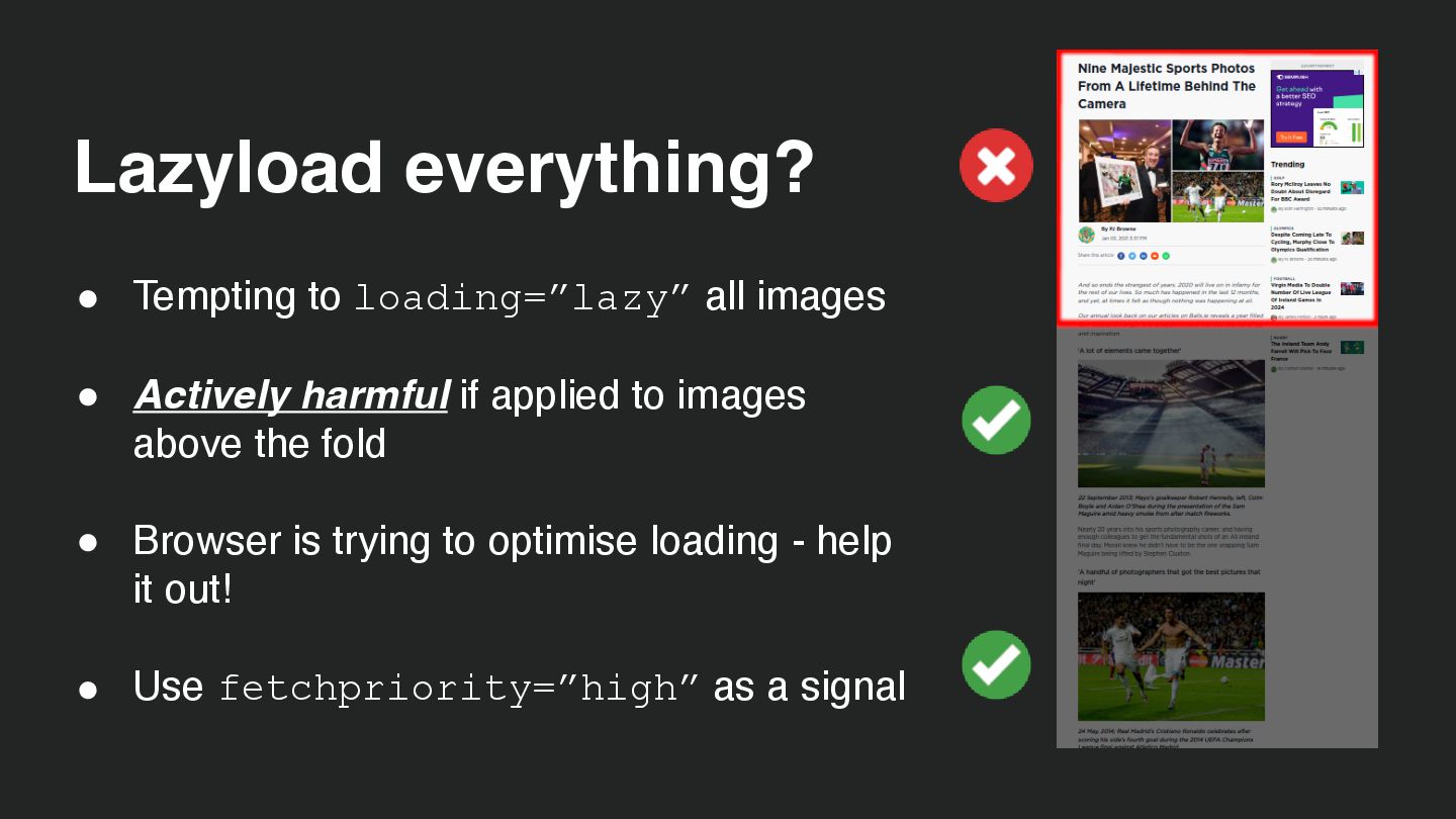 This talk shares quick wins for common page speed issues, plus the metrics to prove your changes made things faster (and less painful). All without getting into the trenches with npm build processes and node version issues!