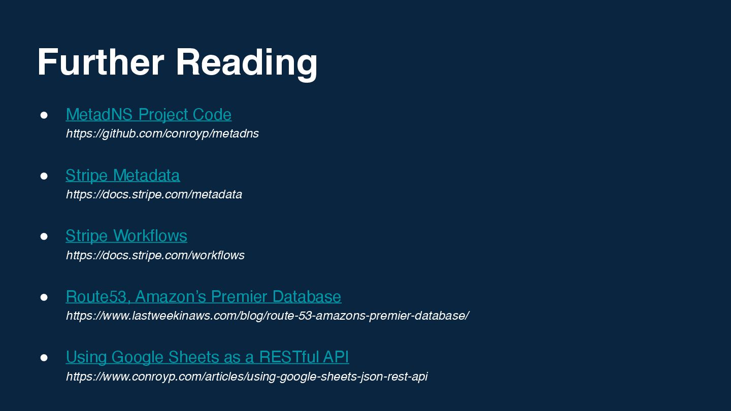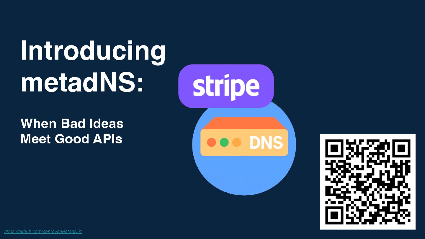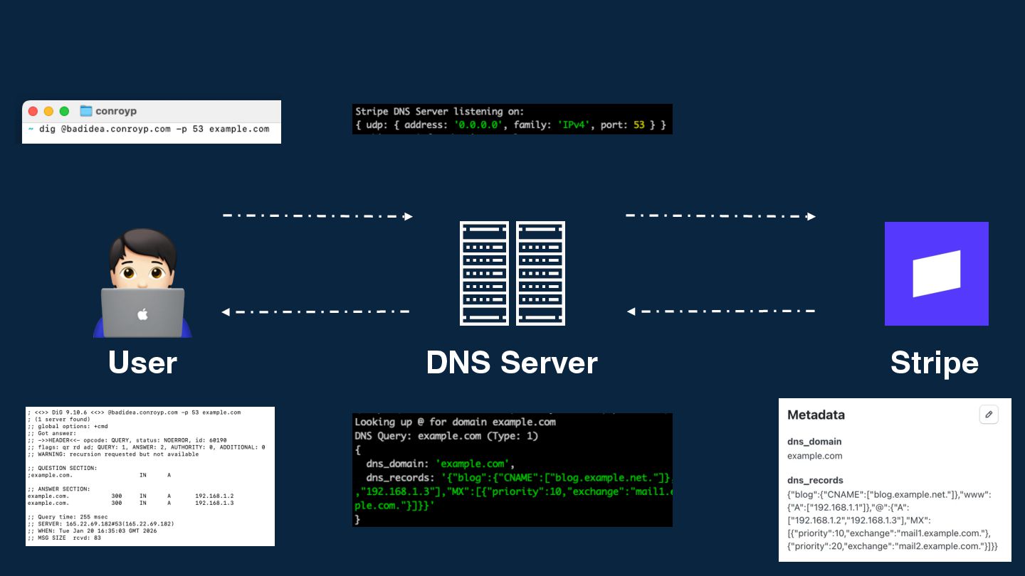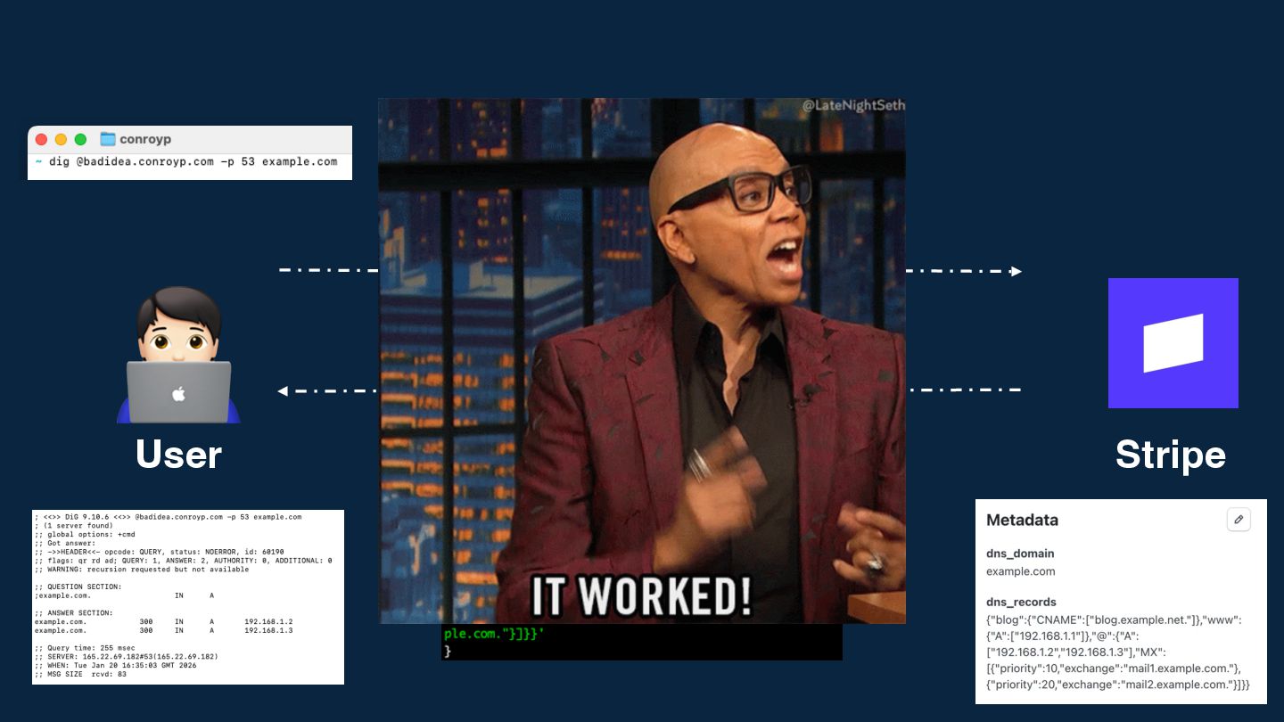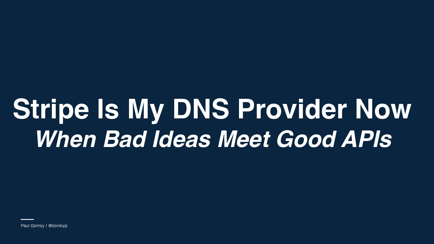 We'll dive into the mechanics of Stripe's metadata feature - normally used for linking internal IDs - and see how far we can stretch it. We'll look at how to coerce a simple key-value store into handling structured DNS records, the challenges of latency and rate limits, and the sheer joy of building something completely useless but technically fascinating.