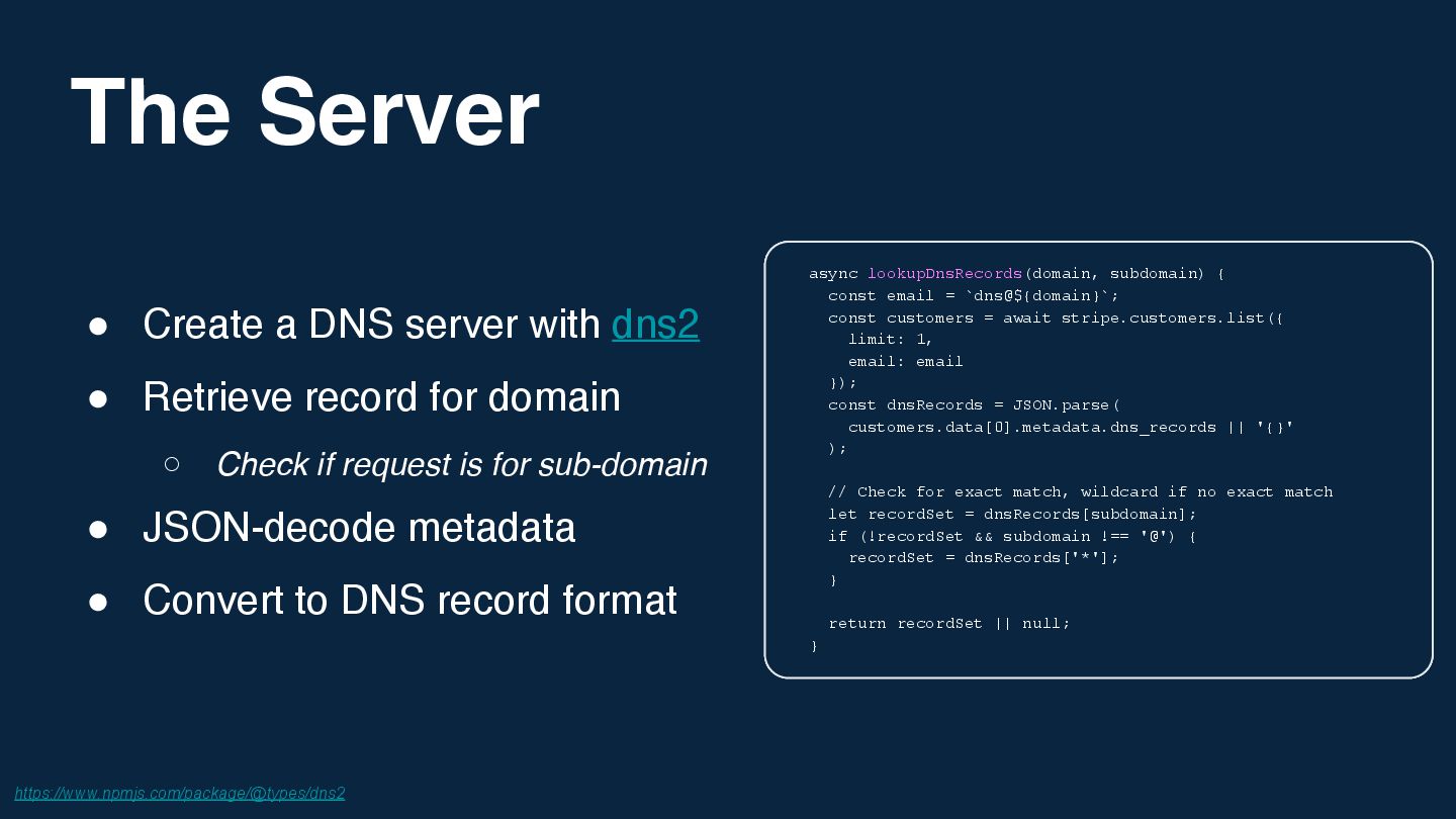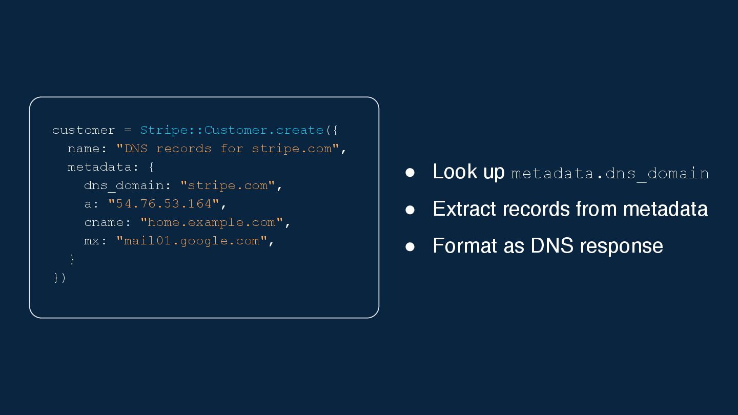 In this talk, we'll explore a project born from that curiosity: using Stripe metadata as the datastore for a fully functional DNS server.