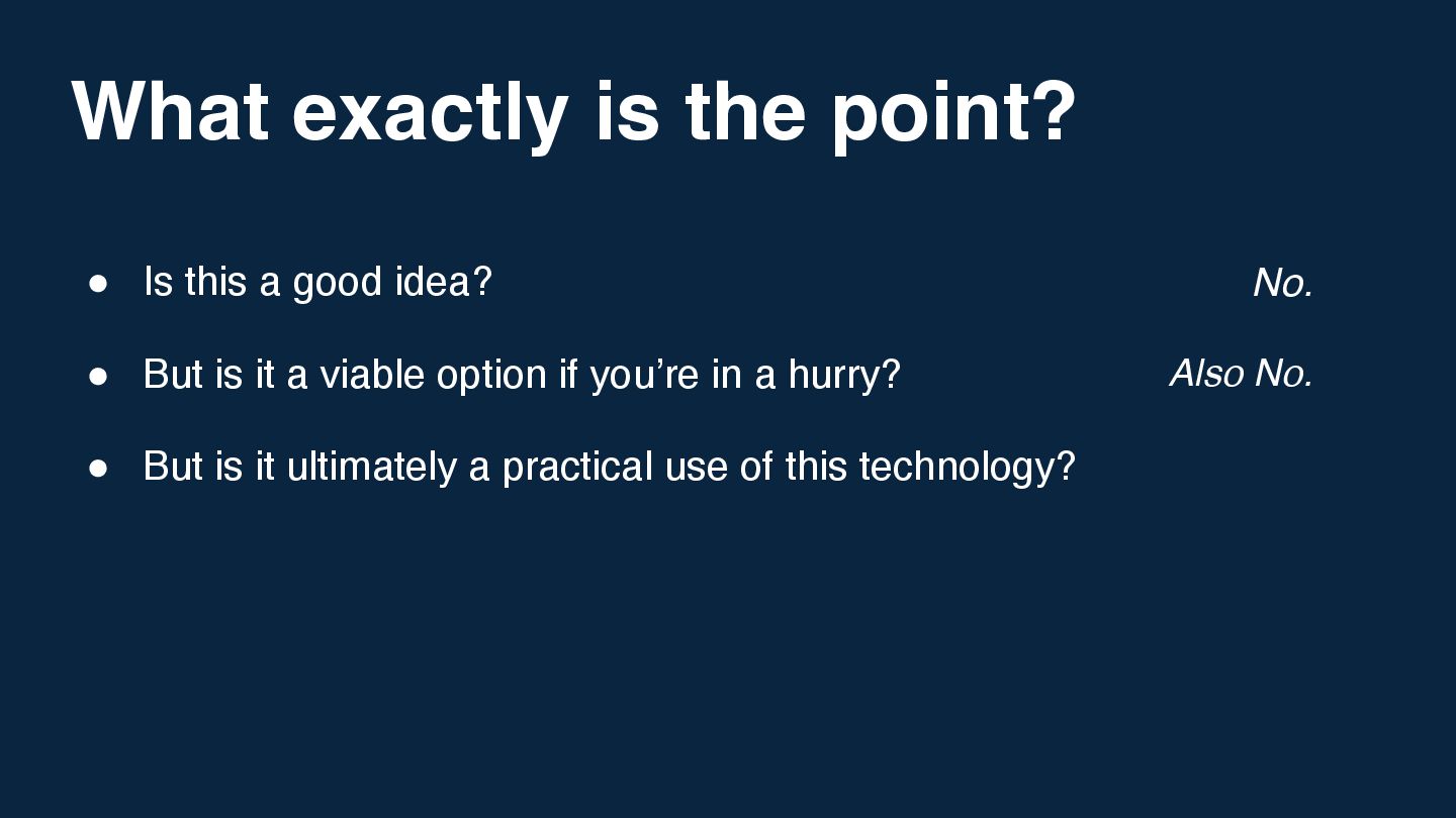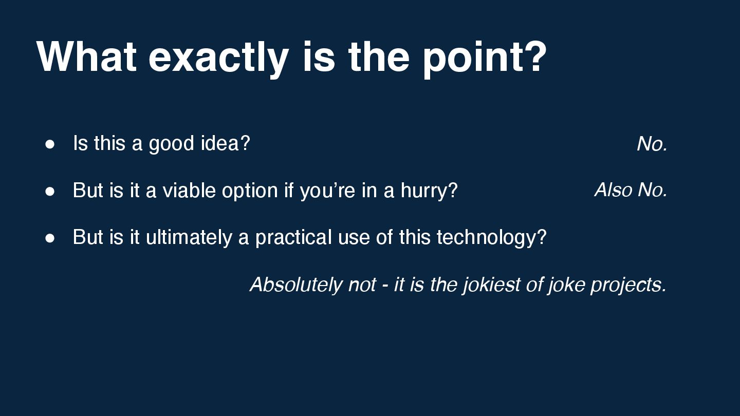 Expect a fun, lighthearted session that proves you can learn a lot about API design and infrastructure by building things that absolutely should not exist.