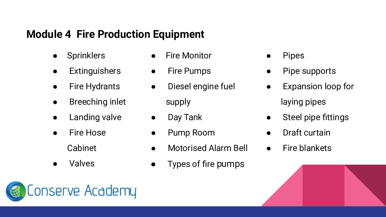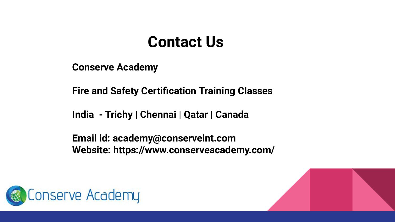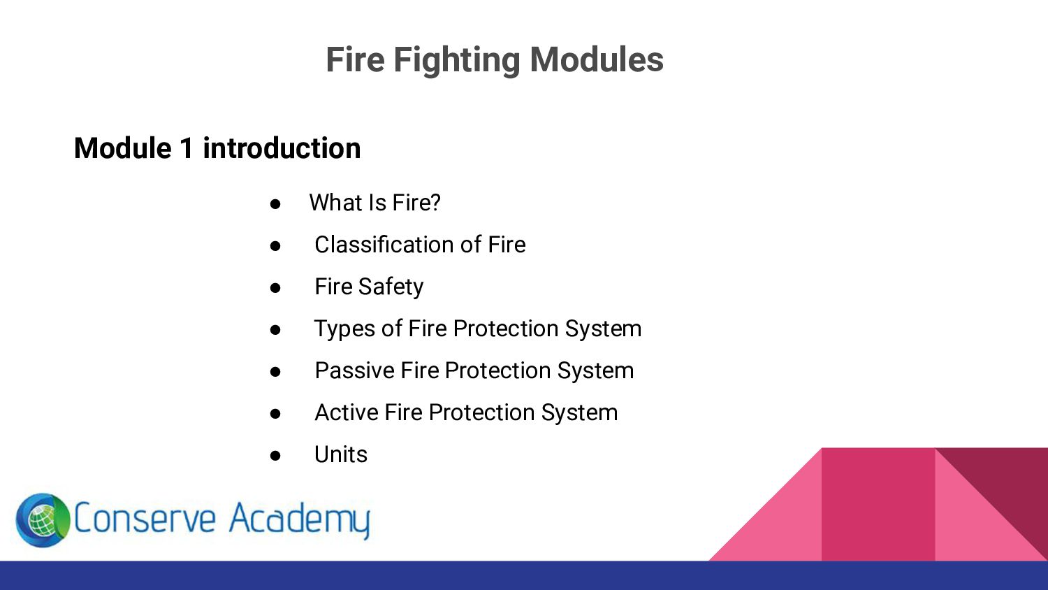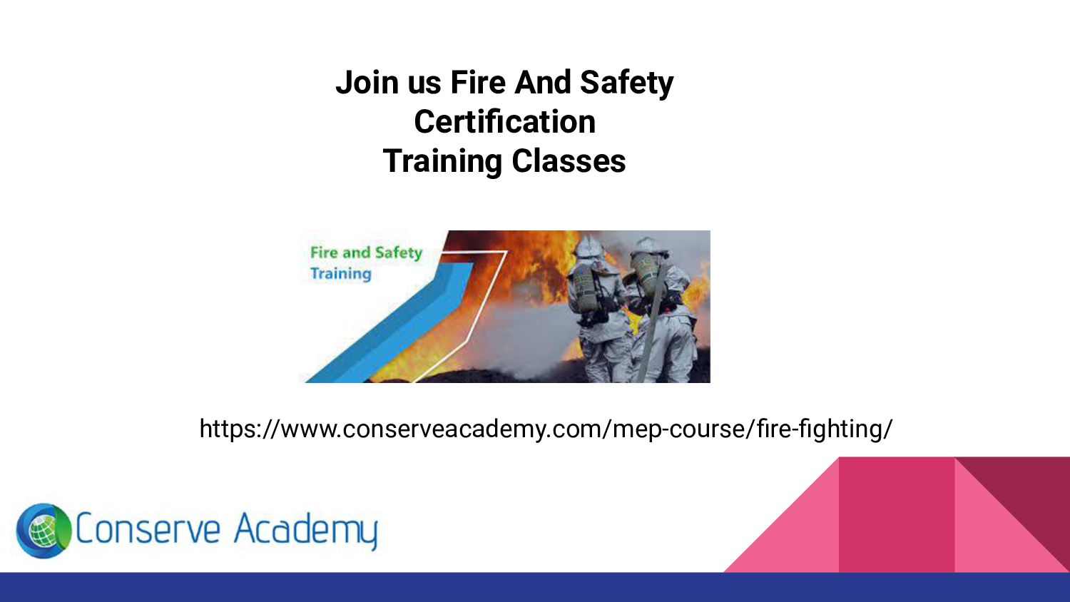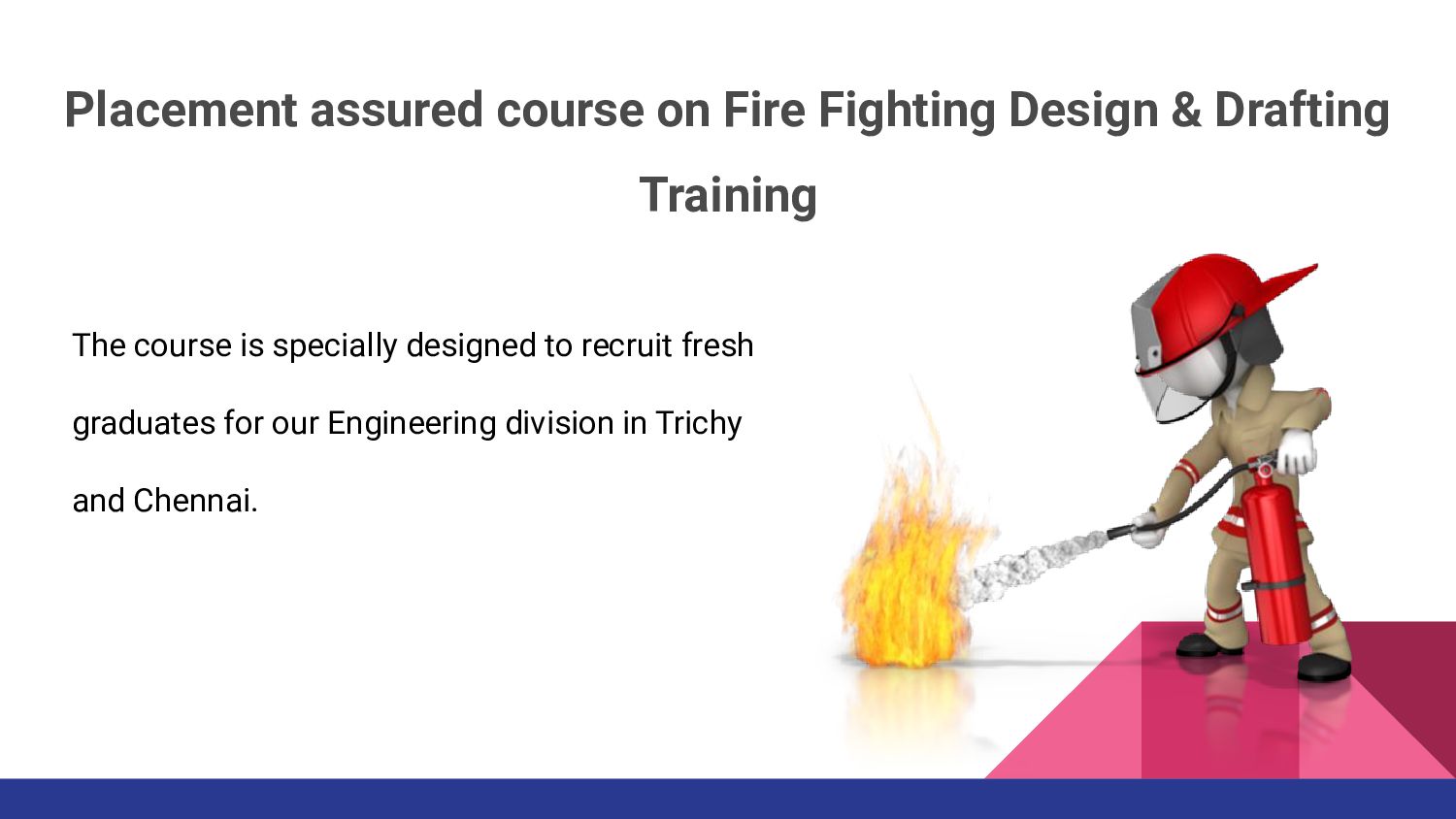 Are you looking for fire and safety courses in Chennai or Trichy. Then you are here, Conserve Academy offers Fire fighting courses. The main goal of this fire fighter engineering training class is to develop our trainee’s knowledge about Fire and safety protection, Fire Security operations etc.
