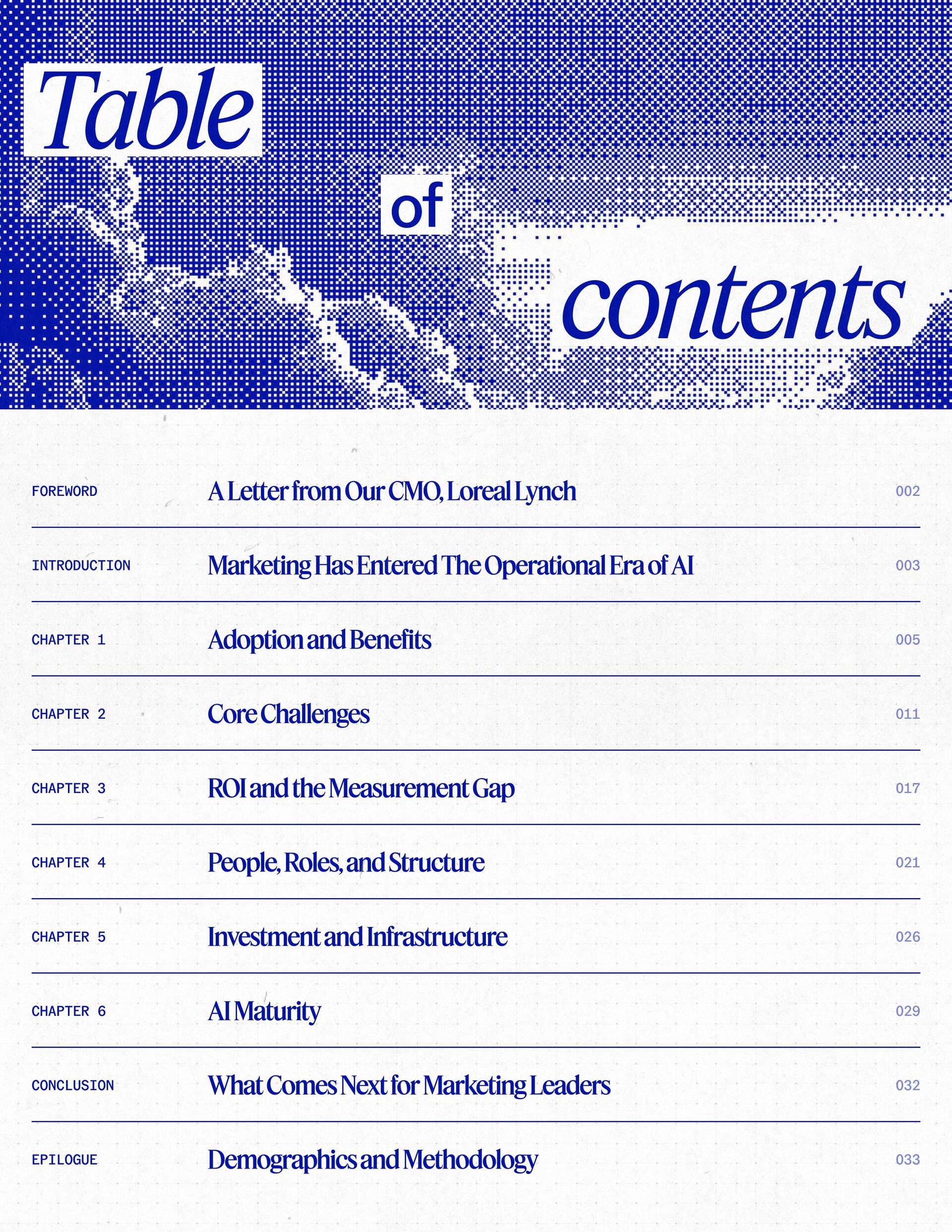 the organization? Who owns the strategy, governance, and outcomes T h e n e x t p h a s e o f A I m a t u r i t y b e l o n g s t o m a r k e t e r s w h o s t e p i n t o t h i s m o m e n t . T h o s e w h o t r e a t A I n o t j u s t a s a t o o l , b u t a s c o r e o p e r a t i n g i n f r a s t r u c t u r e , a n d w h o t u r n s p e e d , q u a l i t y , a n d g o v e r n a n c e i n t o l a s t i n g c o m p e t i t i v e a d v a n t a g e . M y h o p e i s t h a t t h i s r e s e a r c h g i v e s y o u b o t h c l a r i t y a n d c o n v i c t i o n . ( ( N o t j u s t t o u n d e r s t a n d h o w f a r m a r k e t i n g A I h a s c o m e i n a s i n g l e y e a r , b u t t o a c t w i t h c o n f i d e n c e , l e a d w i t h i n t e n t i o n , a n d h e l p d e f i n e w h a t c o m e s n e x t . Chi ef M ark e ting Offi cer Lor e a l L ync h A letter from