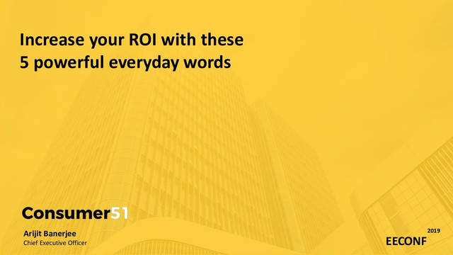 Words matter. We know that. But, what if you could quantify the value of the words you use to determine ROI? In this presentation, I will show you how making simple changes to your everyday vocabulary can drive massive returns for your personal and business growth. How do I know this? Before I founded my company, built teams, landed clients, I spent well over 10,000 hours as a copywriter, helping brands connect with consumers using the right words. I learned through firsthand experience how words could shape opinions, change perceptions, and transform actions. This is not a course on copywriting, however. I will not teach you how to write a great headline in this course. What I will provide you with is just 5 words that when used correctly can transform your life. These are everyday words you are already using. Now learn when and how to use these words and pay attention to how they drive your ROI.