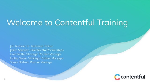 1. Welcome to Contentful Training 1 Jim Ambras, Sr. Technical Trainer