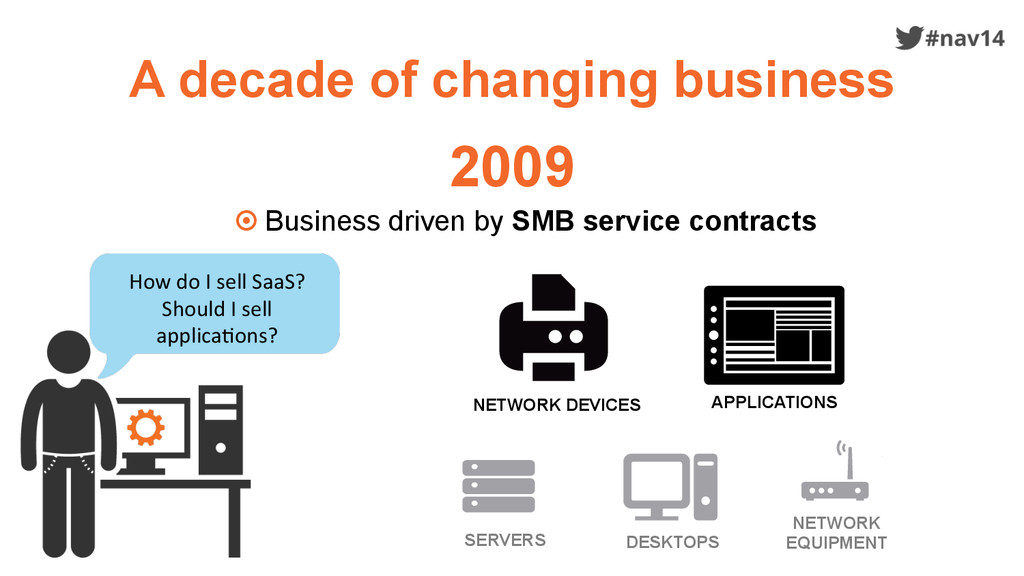 2009 How  do  I  sell  SaaS?     Should  I  sell   applica7ons?   A decade of changing business APPLICATIONS NETWORK DEVICES