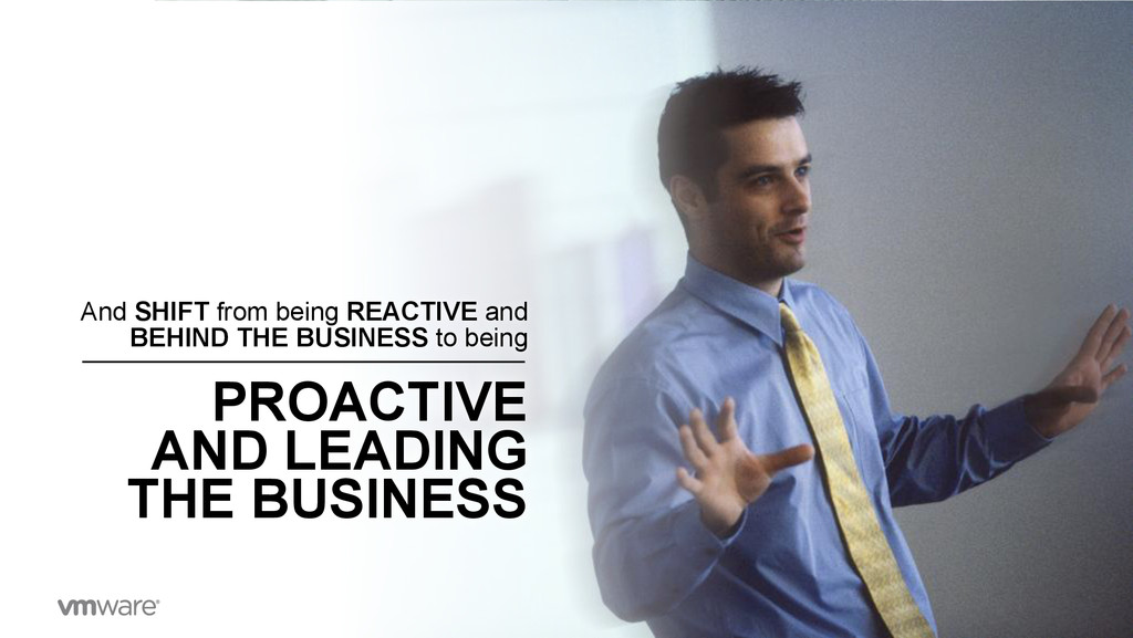 to deliver IT AS A SERVICE GROWING MOVEMENT QUESTION: How do I shift IT costs and resources from maintaining systems to enabling business innovation? PROACTIVE AND LEADING THE BUSINESS And SHIFT from being REACTIVE and BEHIND THE BUSINESS to being