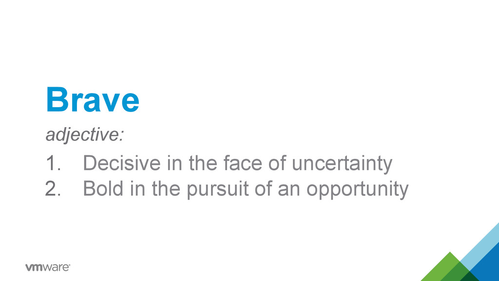 IT IT Response Business Result Business Need defined, IT delivers Business Result OLD IT BRAVE NEW IT • Ingenuity • Together • Simplify • Transcend • Go IT