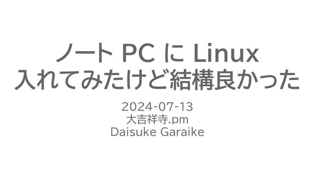 ノート PC に Linux 入れてみたけど結構良かった 2024-07-13 大吉祥寺.pm Daisuke Garaike