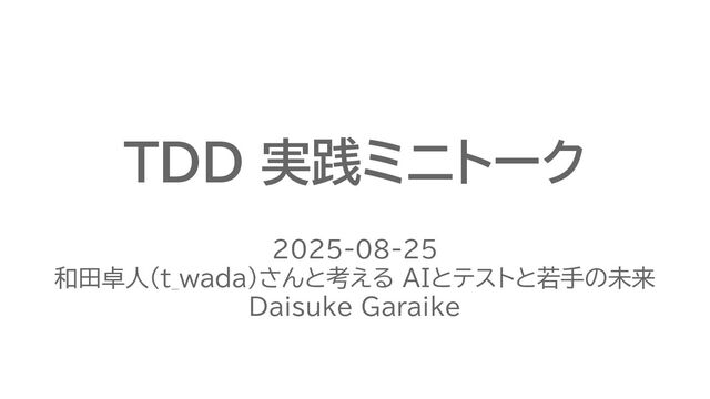 TDD 実践ミニトーク 2025-08-25 和田卓人(t_wada)さんと考える AIとテストと若手の未来 Daisuke Garaike