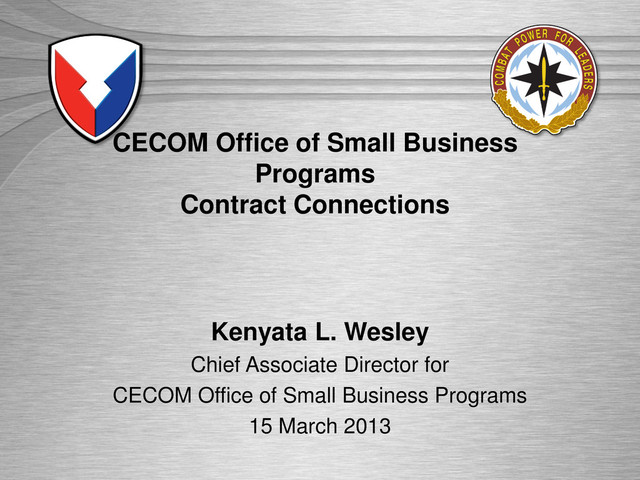 Business Statistics FY 12/13 CATEGORY *FY12 Eligible $’s= $ 9,513,465,793 *ACTUAL GOAL *FY13 Eligible $’s= $ 9,513,465,793 *ACTUAL As of 28 Feb 13 GOAL SMALL $1,249,990,878 13.14% 18.5% $218,894,036 9.37% 16.0% SDB $ 267,942,117 2.82% 2.5% $ 56,139,985 2.40% 2.5% WOSB $ 205,233,179 2.16% 0.6% $ 32,606,279 1.40% 0.6% SDVOSB $ 38,185,426 2.11% 1.0% $ 38,185,426 1.63% 1.0% HUBZONE $ 47,717,433 .50% 0.20% $ 5,589,669 .24% 0.20%
