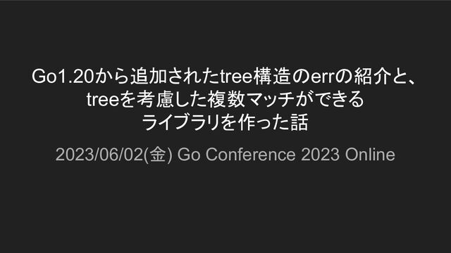 Go1.20から追加されたtree構造のerrの紹介と、 treeを考慮した複数マッチができる ライブラリを作った話 2023/06/02(金) Go Conference 2023 Online