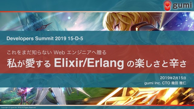 デブサミ 2019 年テーマ「SHARE YOUR FUN!」に則り、私が 15 年間にわたり愛し続けている Erlang や Elixirを、まだ、これらに触れたことがない PHP/Java/JavaScript などが得意な Web エンジニアの方々へ共有します。