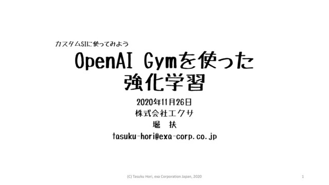 強化学習だけでなく機能要件の知識も必要 • カスタムSIではデータが必要になる場合もある • プロジェクト計画書への折り込み • 品質基準、スケジュール • モデル更新を前提とした保守計画 まとめ (C) Tasuku Hori, exa Corporation Japan, 2020 61
