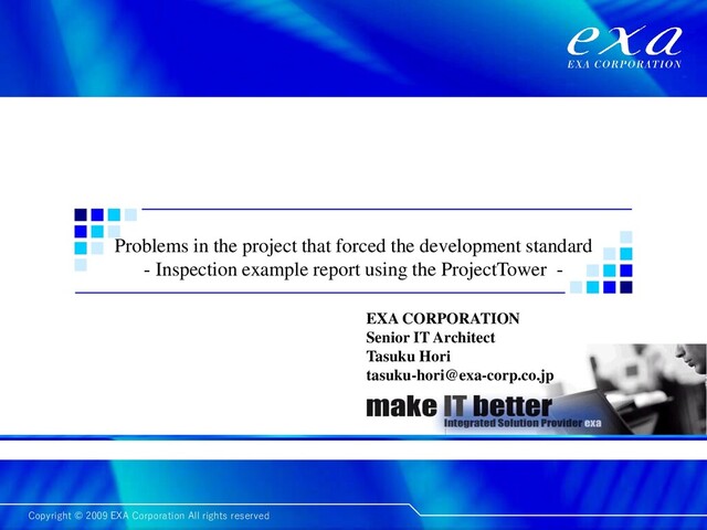 the project that forced the development standard - Inspection example report using the ProjectTower - EXA CORPORATION Senior IT Architect Tasuku Hori [email protected]