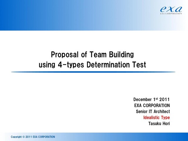 Web Witten Examination <Sample Question> During your childhood, what was the bad memory at the time? ◦ The memory that I was scolded or disliked by others. ◦ ↑ ◦ I can say neither ◦ ↓ ◦ The memory that I could not make any mistake. <Sample Question> During your childhood, what was the bad memory at the time? ◦ The memory that I was scolded or disliked by others. ◦ ↑ ◦ I can say neither ◦ ↓ ◦ The memory that I could not make any mistake. <Sample Question> During your childhood, what was the bad memory at the time? ◦ The memory that I was scolded or disliked by others. ◦ ↑ ◦ I can say neither ◦ ↓ ◦ The memory that I could not make any mistake. Abstractly Concretely Extrovert Introvert 44 Questions ≒