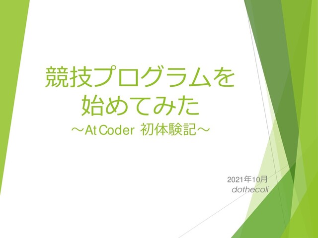 競技プログラムを 始めてみた ~AtCoder 初体験記~ 2021年10月 dothecoli