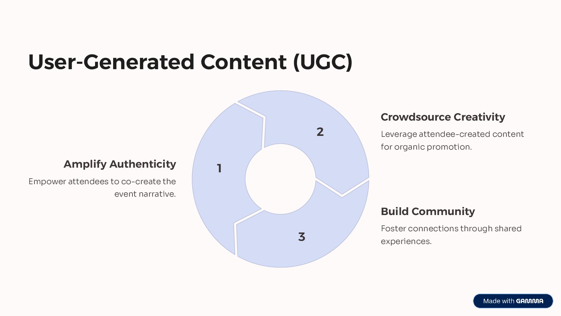 to co-create the event narrative. Crowdsource Creativity Leverage attendee-created content for organic promotion. Build Community Foster connections through shared experiences.