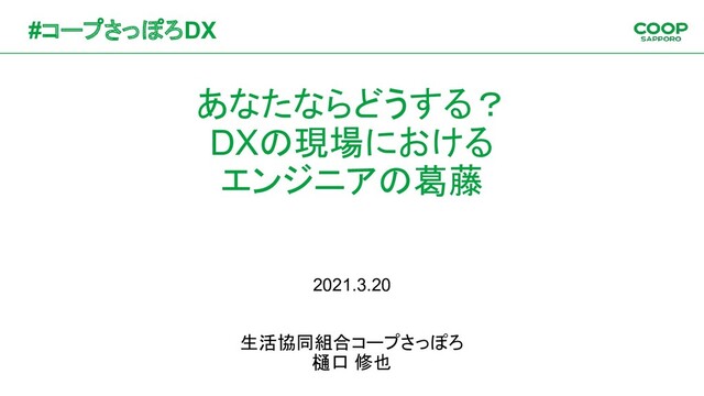 180万人以上に生活インフラを提供するコープさっぽろ。課題先進地域の北海道を変えるべくDXを開始した。AWSを活用し宅配サービス「トドック」のサイトを4ヶ月でリニューアルする。しかしエンジニアはまだいない。事業会社のスタートアップ的な挑戦に、開発途中でジョインしたエンジニアが遭遇した、リアルなDXの現場をお伝えします。