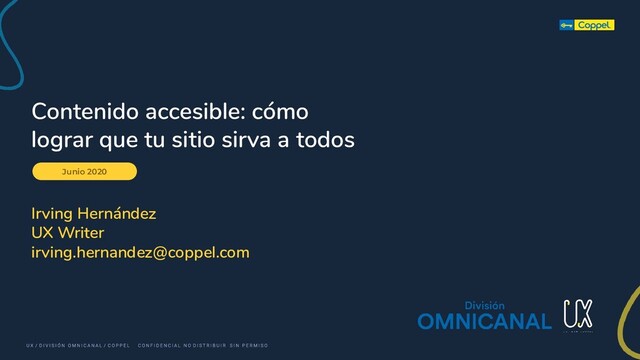 En esta presentación se cubren las bases para creación de contenido para personas con capacidades físicas disminuidas o inexistentes, así como recomendaciones para mejorar su accesibilidad y crear mejores experiencias de usuario.