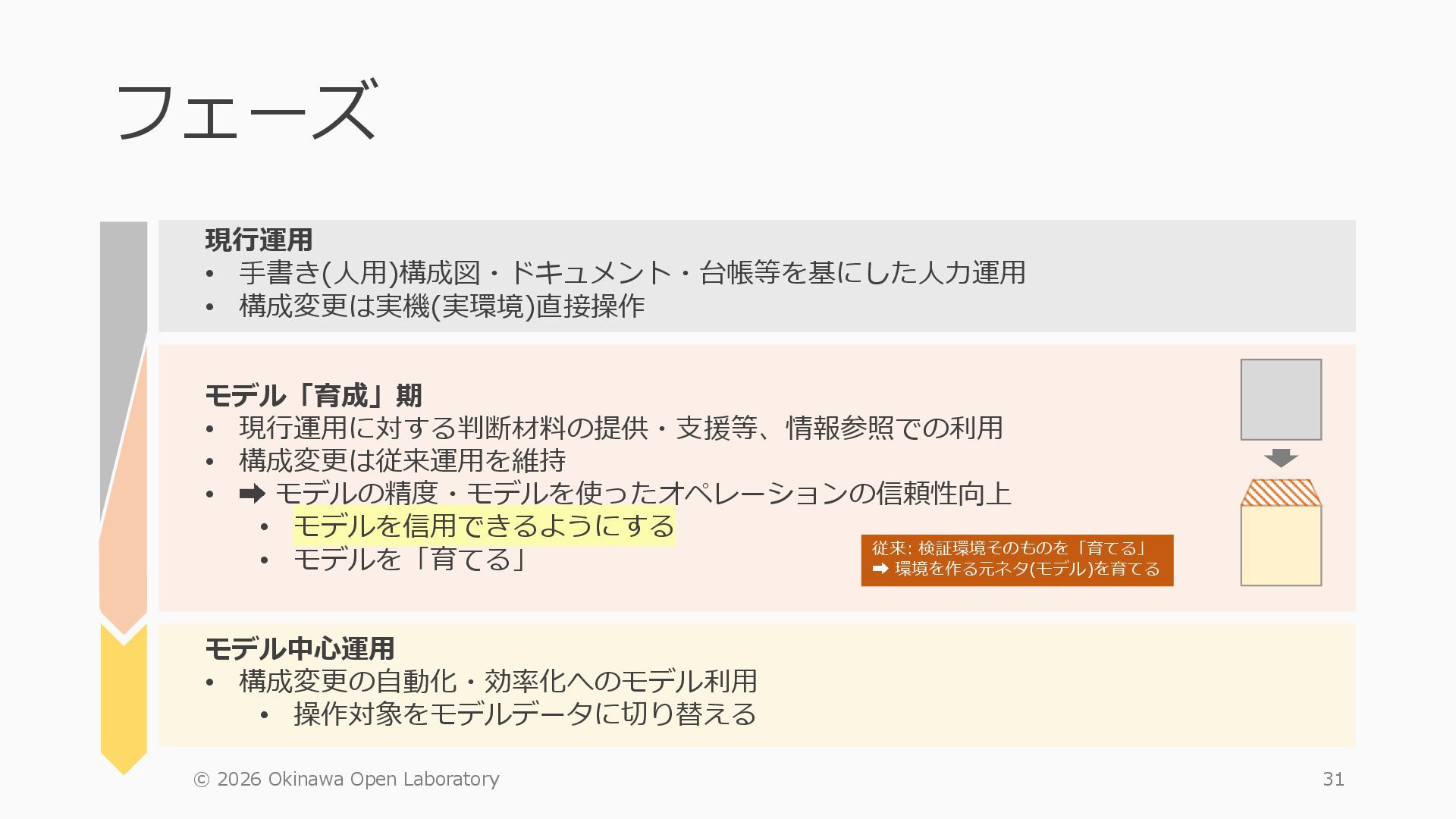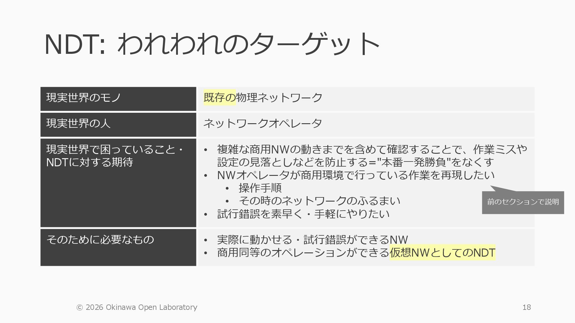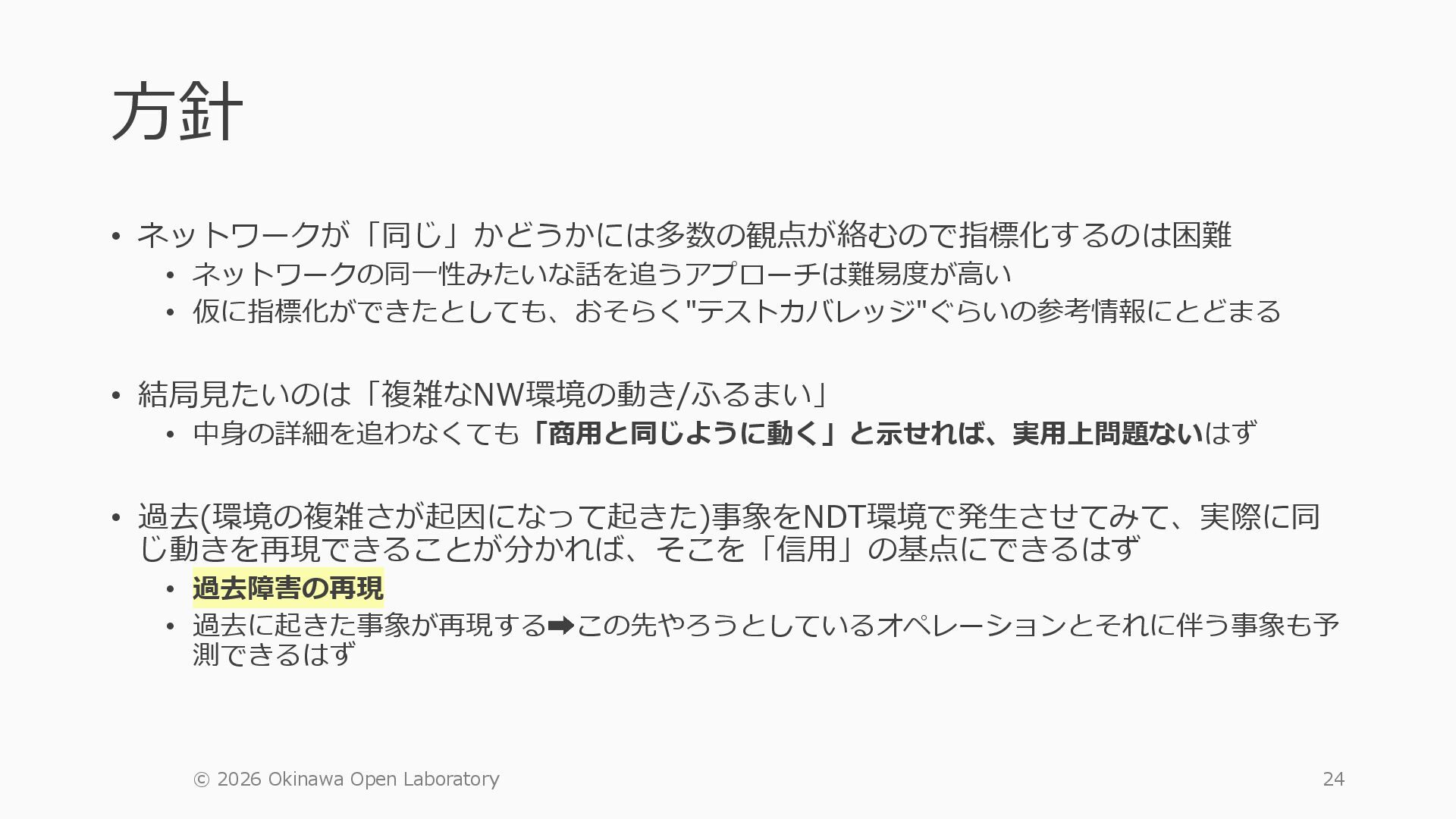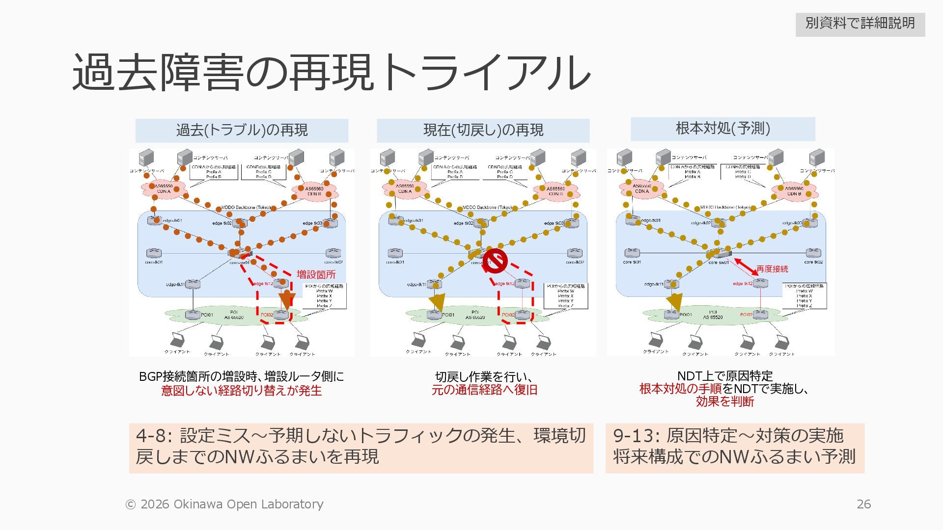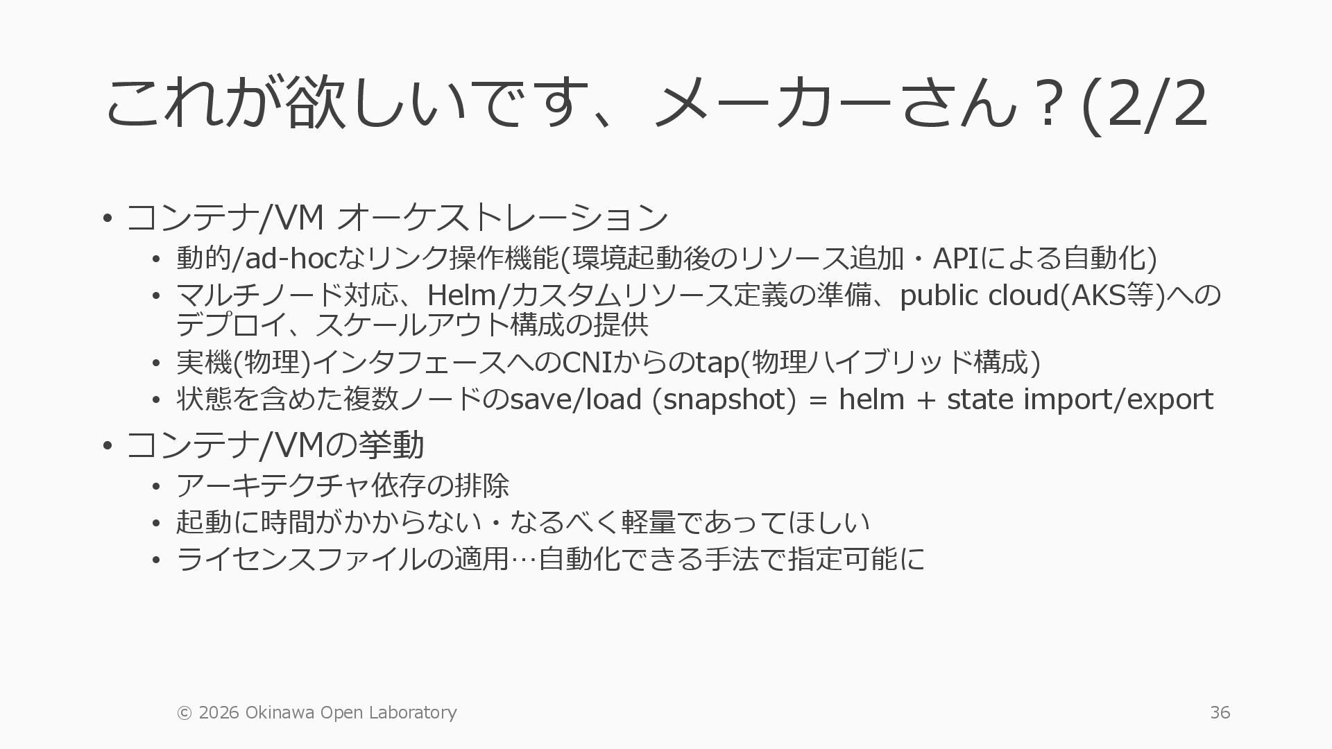 1 =============================================== Port Admin Link Port Cfg Oper LAG/ Port Port Port C/QS/S/XFP/ Id State State MTU MTU Bndl Mode Encp Type MDIMDX ------------------------------------------------------------------------------- 1/1/c1 Down Down conn 100GBASE-LR4* <省略> 1/1/c12 Up Link Up conn 100GBASE-LR4* 1/1/c12/1 Up Yes Up 8704 8704 - netw null cgige <省略> 1/1/c21 Up Link Up conn 100GBASE-LR4* 1/1/c21/1 Up Yes Up 8704 8704 - netw null cgige A:admin@edge-tk12-a# show card 1 memory-pools ================================================ Card 1 Memory Pools ================================================ Name Max Allowed Current Size Max So Far In Use ------------------------------------------------------------------------------- IOM No limit 2,159,706,112 2,161,803,264 2,144,510,160 <省略> A:admin@edge-tk12-a# show card a memory-pools ================================================= Card a Memory Pools ================================================= Name Max Allowed Current Size Max So Far In Use ------------------------------------------------------------------------------- BFD No limit 9,444,656 9,444,656 8,318,528 BGP No limit 6,291,504 6,291,504 5,015,536 l3_preallocated_resources: - type: node name: as65520-edge01 asn: 65520 interfaces: - Ethernet3 - type: node name: edge-tk12 interfaces: - 1/1/c12/1 - 1/1/c21/1 emulated_params: license: ./sros_license.txt image: localhost/nokia/srsim:25.7.R1 kind: nokia_srsim type: SR-2s components: - slot: A - slot: 1 type: xcm-2s sfm: sfm-2s env: NOKIA_SROS_CARD: xcm-2s NOKIA_SROS_MDA_1: s36-100gb-qsfp28 増設リソース にSR-SIMを指 定して 利用できる よりGAPの少 ない操作が可 能に