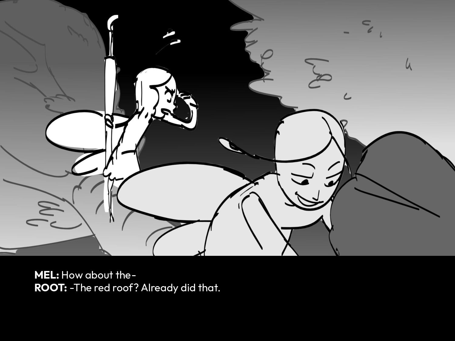 MEL: Did we get that house? ROOT: The one on