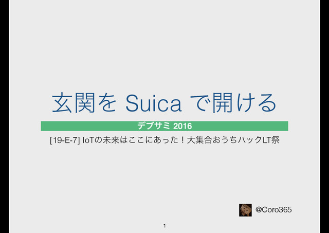 デブサミ2016 [19-E-7]IoTの未来はここにあった!大集合おうちハックLT祭 で使用したスライドです http://event.shoeisha.jp/devsumi/20160218/session/1059/