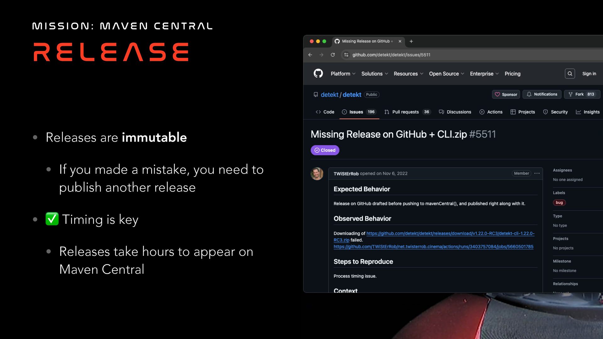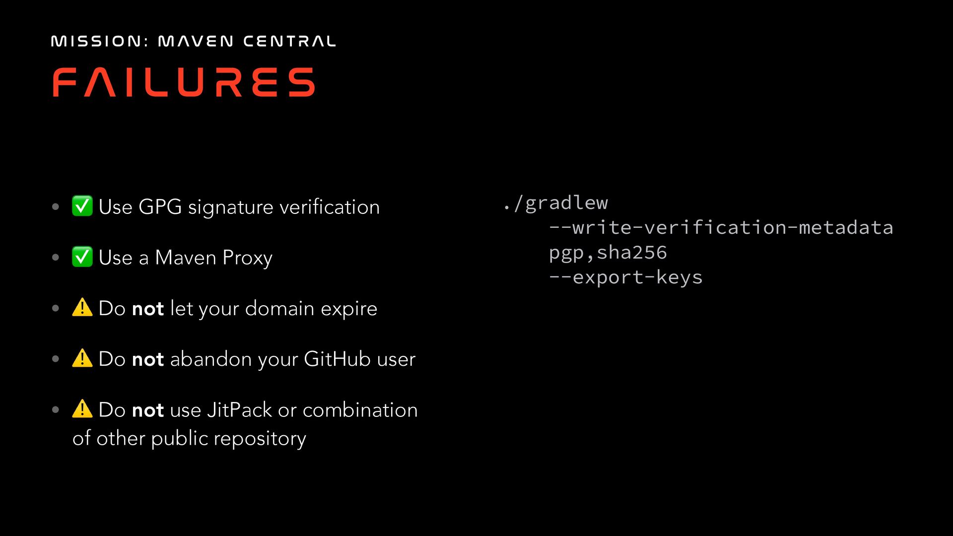 Expect incident stories, practical tips, and a series of do’s and don’ts to don’t be miserable when publishing to Central and making your next release smooth and drama-free!