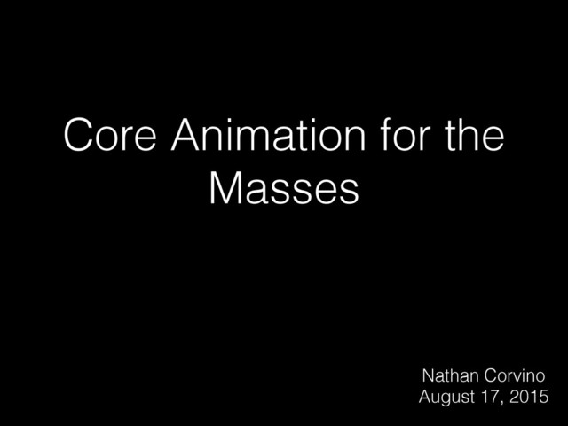See example apps: https://github.com/corvino/LayerExplorer https://github.com/corvino/AnimationTiming https://github.com/corvino/AnimationShowcase