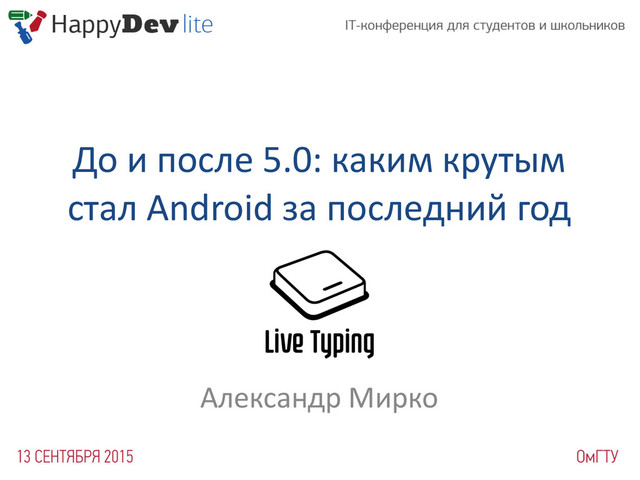 HappyDevLite'15, Aleksandr Mirko - До и после 5.0: каким крутым стал Android за последний год