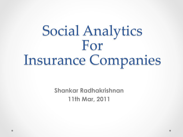 Networking For Insurance Companies Ø Understanding Social Data Ø Social Intelligence Ø Business Goals Ø Benefits Ø Differentiators Ø Approach Ø Social Strategy Ø Business Alignment