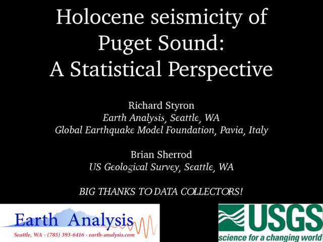 Earth Analysis, Seattle, WA Global Earthquake Model Foundation, Pavia, Italy Brian Sherrod US Geological Survey, Seattle, WA BIG THANKS TO DATA COLLECTORS!