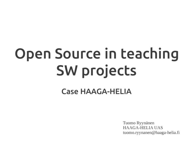 HAAGA-HELIA UAS [email protected] +358 40 543 4289 Subjects: ICT projects, CRM/ERP, IT administration, Business management, ICT Entreprenaurship, Open Source (as a production model), Free Software (as a commodity), Happy Hacking Day -events