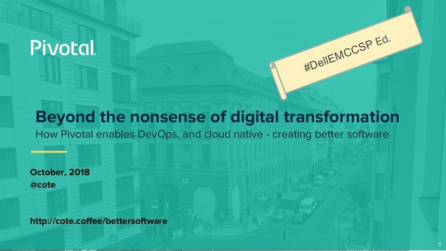 shipped in 6 months vs. 18. 3+ week to 3 days, 50% reduction in incidents, 4 ops. Small teams deploying to production in minutes, not days. Sources: Crafting your cloud-native strategy, Coté, 2017; Air Force story; Mojgan Lefebvre, Liberty Mutual, June, 2017; Interview with Orange’s Xavier Perret, 2017; "A Unifying Foundation for the Customer Journey at Mercedes-Benz," BuiltToAdapt, Apr 2018; Allianz interview, Sep 2016. Modernized app, rolled out 20 countries in 5 months 40% policy strike rate, vs. 20% industry average. 9 40%+ productivity/cost, rebooted member facing app.
