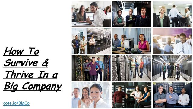 If you work at a small, cool company, you can skip this talk. The rest of us in large, slow moving companies that rely on meetings, email, and inbox 2,000 to get the daily work done need some therapy and advice for thriving in big, “dumb” companies. I’ve worked in such companies and figured out how to thrive in the “back to back meetings” world we’re taught to avoid. They’re big, slow moving, and seem to use Microsoft Office as their core innovation engine. I’ll tell you my tactics.