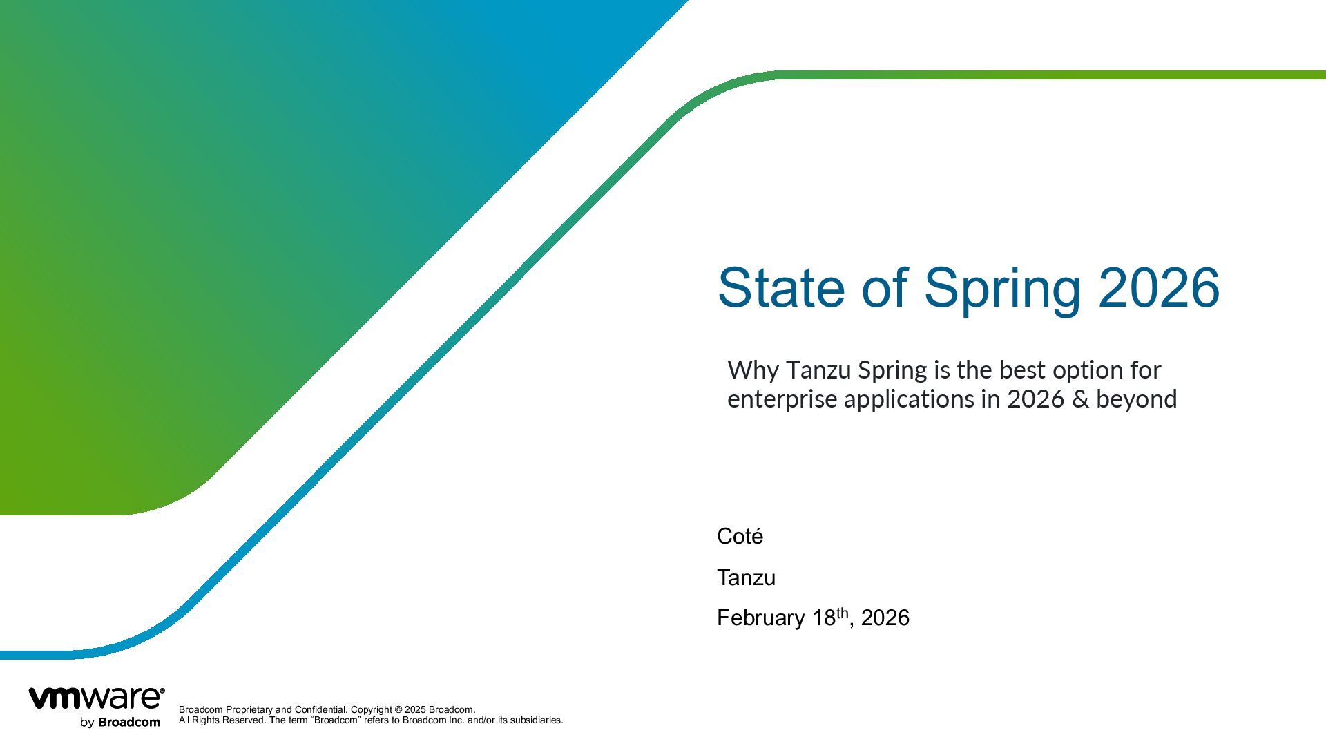 Reserved. The term “Broadcom” refers to Broadcom Inc. and/or its subsidiaries. State of Spring 2026 Coté Tanzu February 18th, 2026 Why Tanzu Spring is the best option for enterprise applications in 2026 & beyond