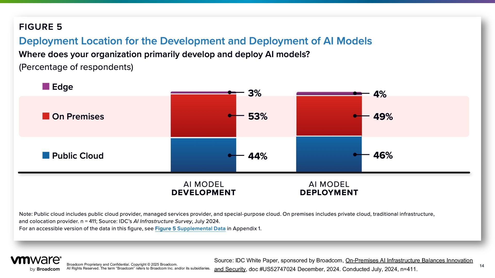 Reserved. The term “Broadcom” refers to Broadcom Inc. and/or its subsidiaries. 14 14 Source: IDC White Paper, sponsored by Broadcom, On-Premises AI Infrastructure Balances Innovation and Security, doc #US52747024 December, 2024. Conducted July, 2024, n=411.