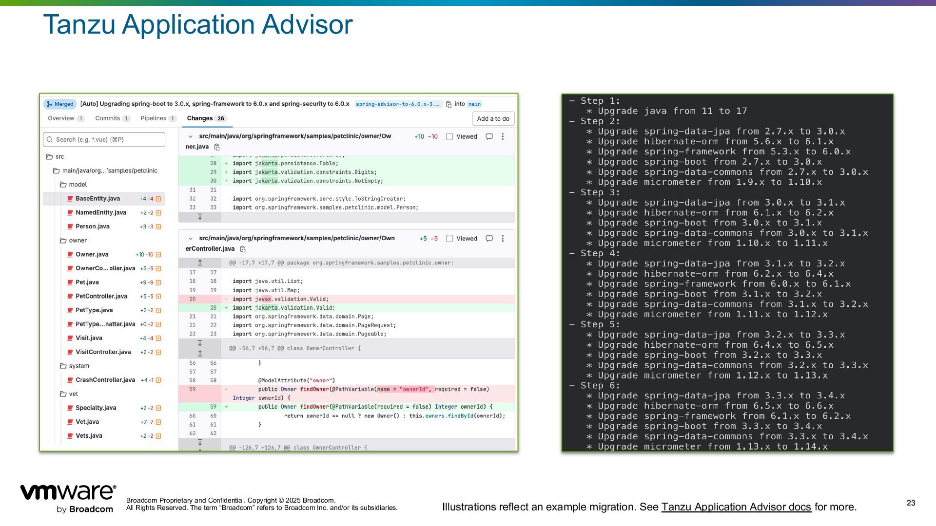 Reserved. The term “Broadcom” refers to Broadcom Inc. and/or its subsidiaries. 23 23 Tanzu Application Advisor Illustrations reflect an example migration. See Tanzu Application Advisor docs for more.