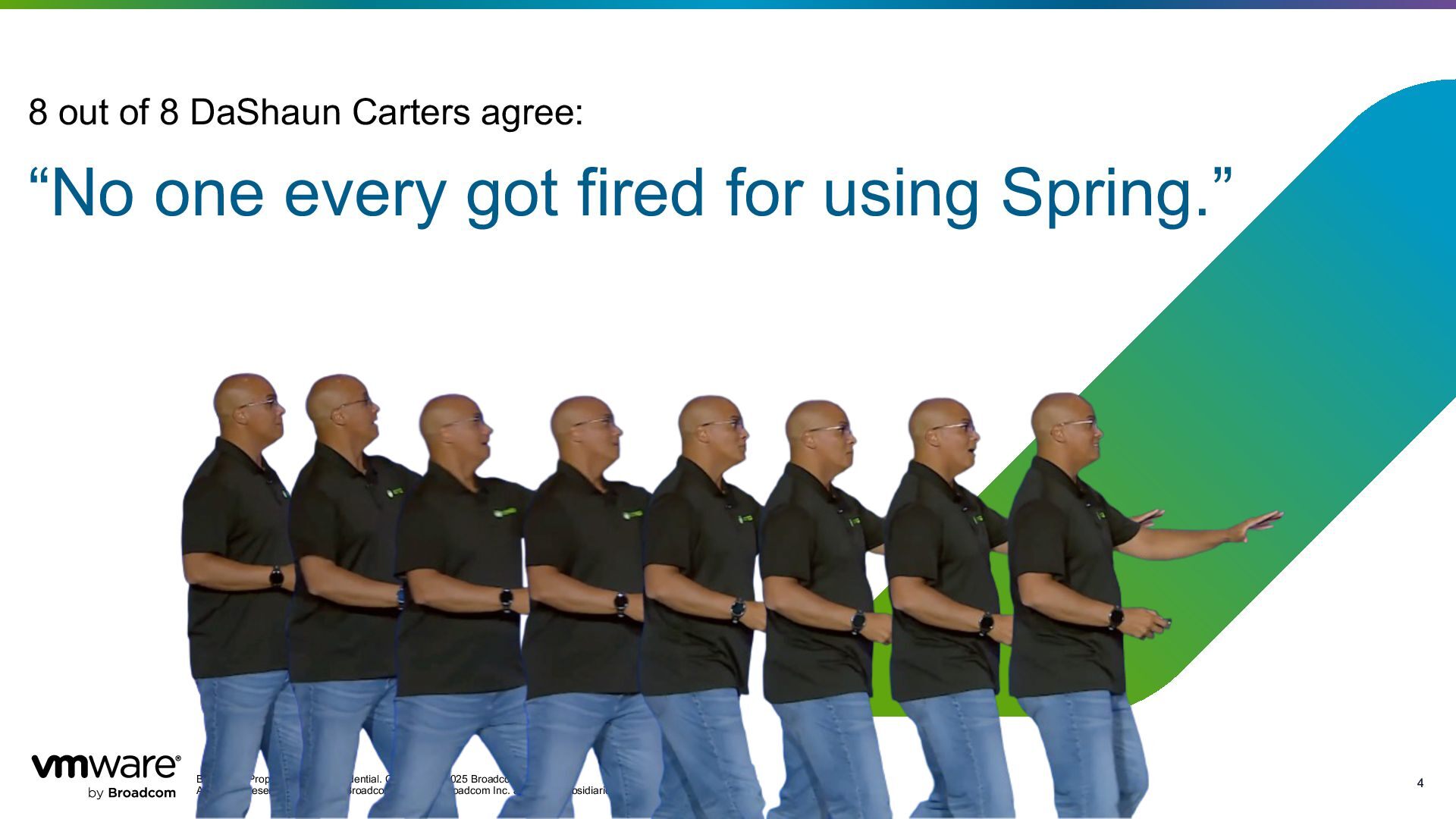 Reserved. The term “Broadcom” refers to Broadcom Inc. and/or its subsidiaries. 4 4 “No one every got fired for using Spring.” 8 out of 8 DaShaun Carters agree: