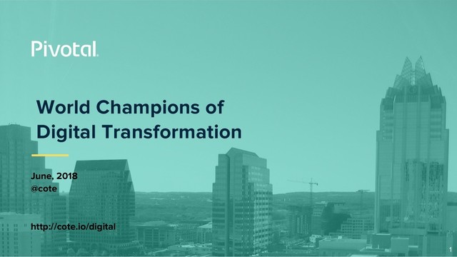 shipped in 6 months vs. 18. 3+ week to 3 days, 50% reduction in incidents, 4 ops Moved from a white- board to ~20 features a week, in 120 days Sources: Crafting your cloud-native strategy, Coté, 2017; Air Force story; Mojgan Lefebvre, Liberty Mutual, June, 2017; Interview with Orange’s Xavier Perret, Pivotal Insights #53, 2017; Boeing and the Three E’s of Digital Transformation," Jeff Kelly, Built to Adapt, March 2018. 100x inf. delivery, 6x asset utilization 40% policy strike rate, vs. 20% industry average 3 40%+ productivity/cost, rebooted member facing app