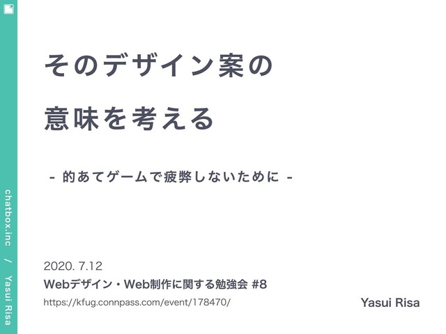 Yasui Risa そのデザイン案の 意味を考える - 的あてゲームで疲弊しないために - 2020. 7.12 https://kfug.connpass.com/event/178470/