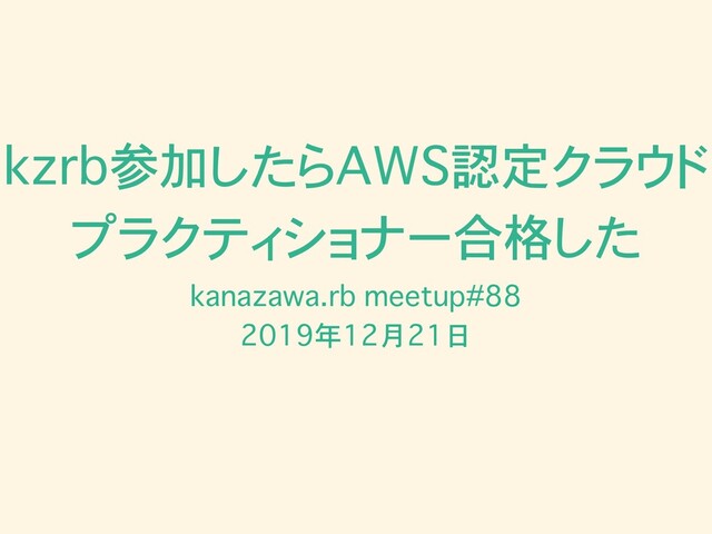 kzrb参加したらAWS認定クラウド プラクティショナー合格した kanazawa.rb meetup#88 2019年12月21日
