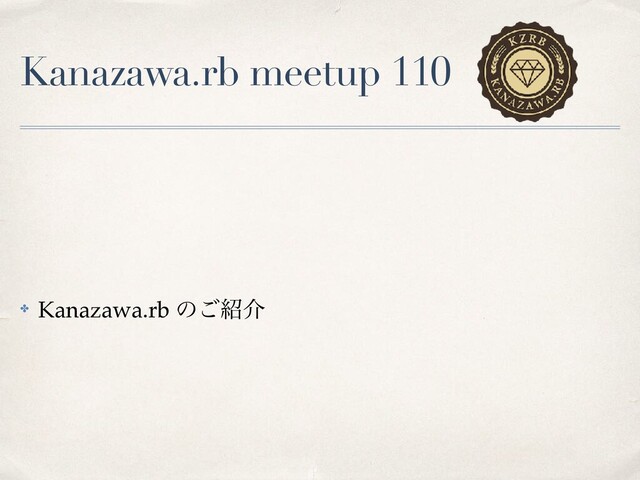 Kanazawa.rb meetup 1 1 0 ✤ Kanazawa.rb ͷ͝հ