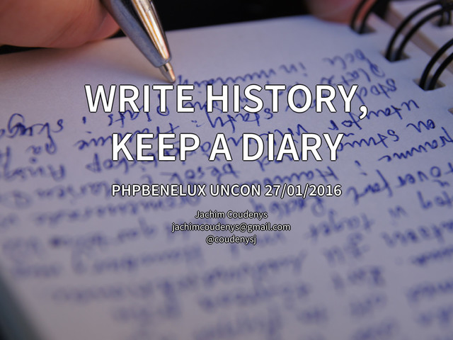 WRITE HISTORY, WRITE HISTORY, WRITE HISTORY, KEEP A DIARY KEEP A DIARY KEEP A DIARY KEEP A DIARY KEEP A DIARY KEEP A DIARY KEEP A DIARY KEEP A DIARY PHPBENELUX UNCON 27/01/2016 PHPBENELUX UNCON 27/01/2016 PHPBENELUX UNCON 27/01/2016 PHPBENELUX UNCON 27/01/2016 PHPBENELUX UNCON 27/01/2016 PHPBENELUX UNCON 27/01/2016 PHPBENELUX UNCON 27/01/2016 PHPBENELUX UNCON 27/01/2016 Jachim Coudenys Jachim Coudenys Jachim Coudenys Jachim Coudenys Jachim Coudenys Jachim Coudenys Jachim Coudenys Jachim Coudenys [email protected] [email protected] [email protected] [email protected] [email protected] [email protected] [email protected] [email protected] @coudenysj @coudenysj @coudenysj @coudenysj @coudenysj @coudenysj @coudenysj @coudenysj